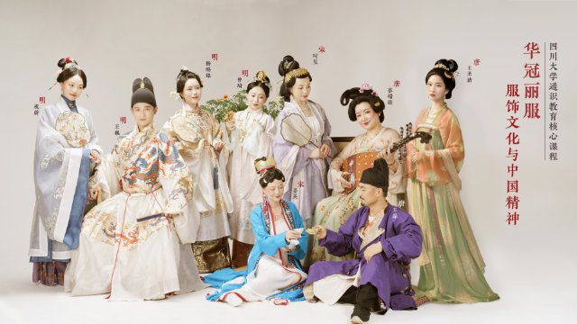 在建设美育类通识教育核心课程之初,为打破学科壁垒,课程负责人精心组建了跨学院、跨专业、跨学科教学团队,来自轻工科学与工程学院、艺术学院、文学与新闻学院、历史学院的9位不同专业的老师,从各自专业领域出发,立足设计、美学、历史、文学、制造等不同维度和角度,深度解析华服变迁,综合学科视野为同学们深度解读传统服饰之美,力求专业知识通识化,带领学生沉浸赏鉴中国服饰文化的感性之美、理性之美和共情之美,并体会其中蕴含的哲学与人文思想,构建大局观,提升审美认知。